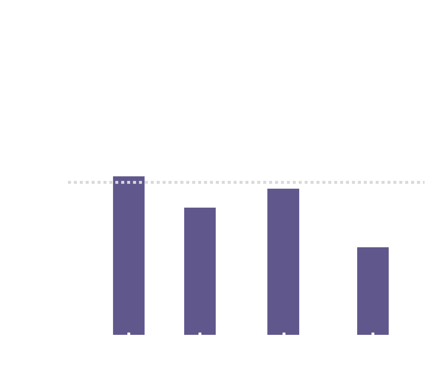 My expectation was that each of the 16 unique phenotypic combinations (resulting from four genes) would represent roughly 6.25% (indicated by the dotted line) of the offspring. This is because the C4A female is heterozygous for each gene, while Gandalf is homozygous. This means each individual gene should show an even 50% distribution of its two phenotypes. At first glance, the overall phenotypic distribution seems uneven with C4 having a majority. But a few of the phenotypes are close to the 6.25% line. However, after examining the distributions of each gene individually, the picture becomes much clearer:
