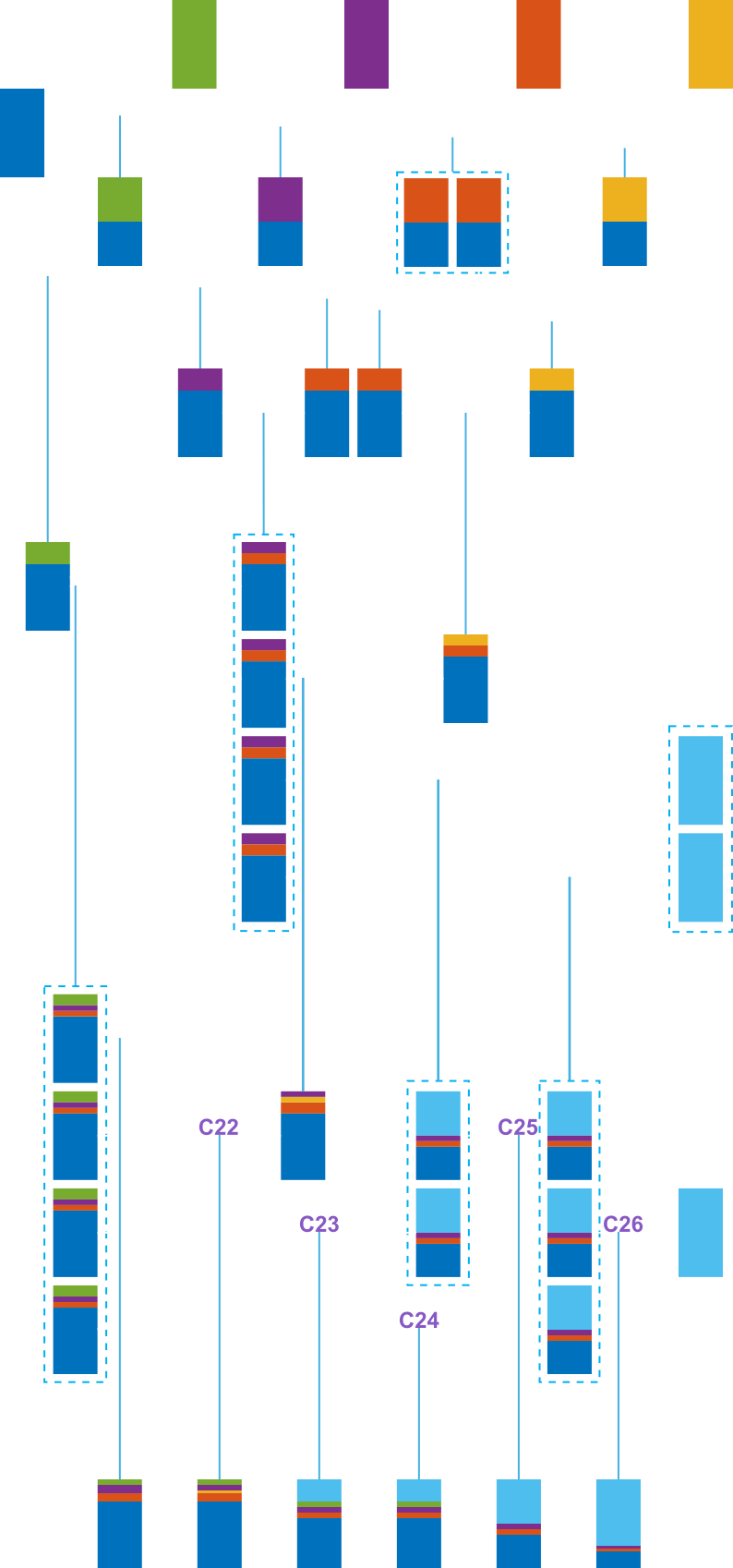 I was curious to know how much blood is shared between all the offspring using a visual aid. Using the same structure as the tree above, I assigned a different color to the original five guppies and the red rose tails. With each cross, I calculated the total amount of blood that is shared. Gandalf (blue) has the largest portion as he was the one that was backcrossed. The shared blood from each of the original females begins to decrease with each cross that is mixed. If I did not begin introducing the red roses, the amount of shared blood from the original four females would have stabilized to around 6.25% in each offspring. The cross labels in purple have not occurred yet and are currently planned but are subject to change.